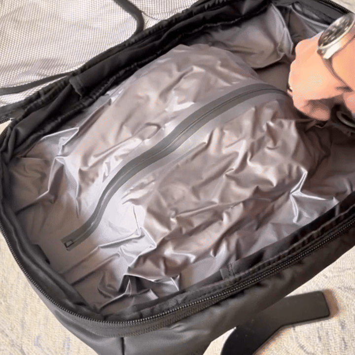 Dank intelligenter Vakuum-Technologie saugt er per Knopfdruck die Luft raus und spart bis zu 50 % Volumen – perfekt für smartes, platzsparendes Reisen